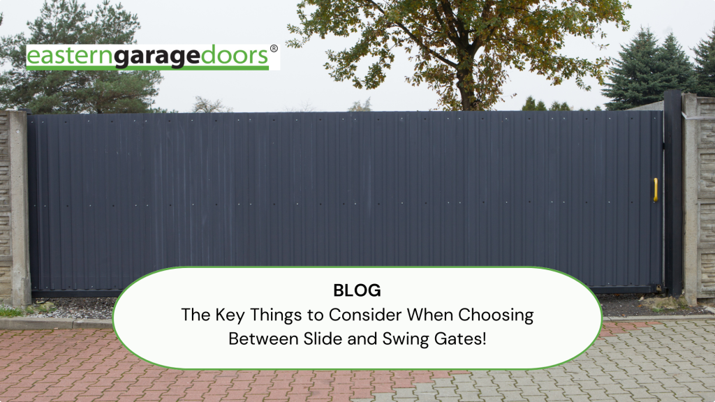 Finally, once you’ve decided whether a slide gate or swing gate is more suitable for your property, the last thing to consider is the design. The design of your gate can significantly increase your curb appeal if you choose the right finish. Wooden panels and metal barred gates are popular choices. Remember once you’ve picked out your gate, call Eastern Garage Doors to order and install your slide gate opener or swing gate opener!